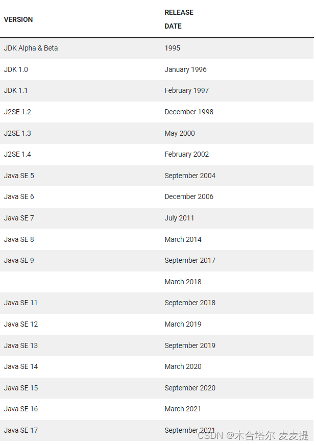 1996年:Java开发工具包(JDK)1.0发布。Java因其健壮性、性能、安全性等诸多特性而迅速流行起来。