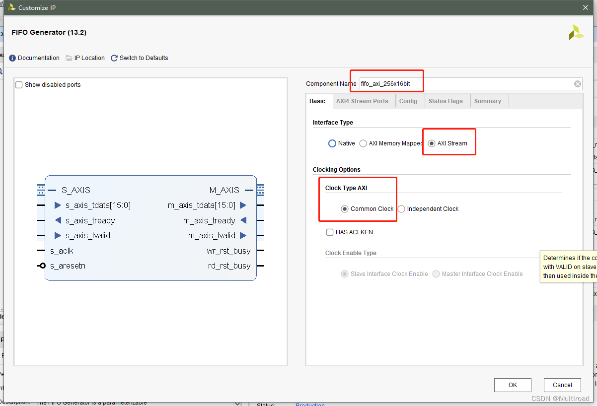 Step 1:修改名称、选择axi stream、根据需要选择同一时钟或者跨时钟