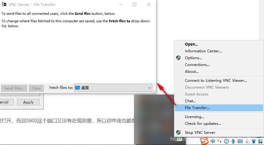 6,文件传输功能只说一点,右键VNC Server,点击File Transfer,即可出现左侧的操作框,其他的自己研究去吧,谢谢!
