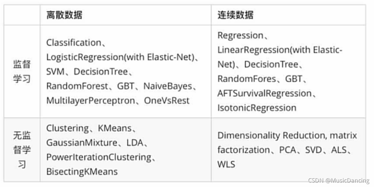 MLlib由一些通用的学习算法和工具组成,同时还包括底层的优化原语和高层的流水线API。