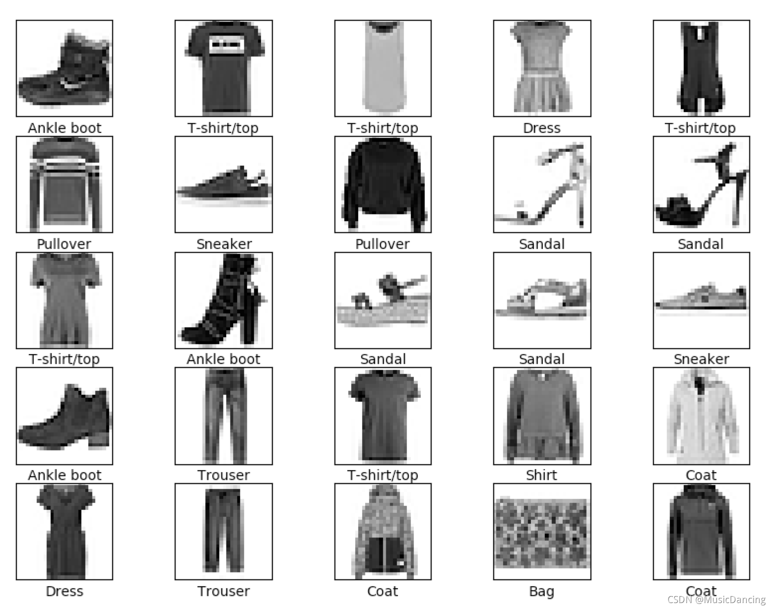 训练一个神经网络模型,实现对运动鞋和衬衫等服装图像进行分类。使用 Fashion MNIST 数据集,该数据集包含 10 个类别的 70,000 个灰度图像。这些图像以低分辨率(28x28 像素)展示了单件衣物,如下所示: