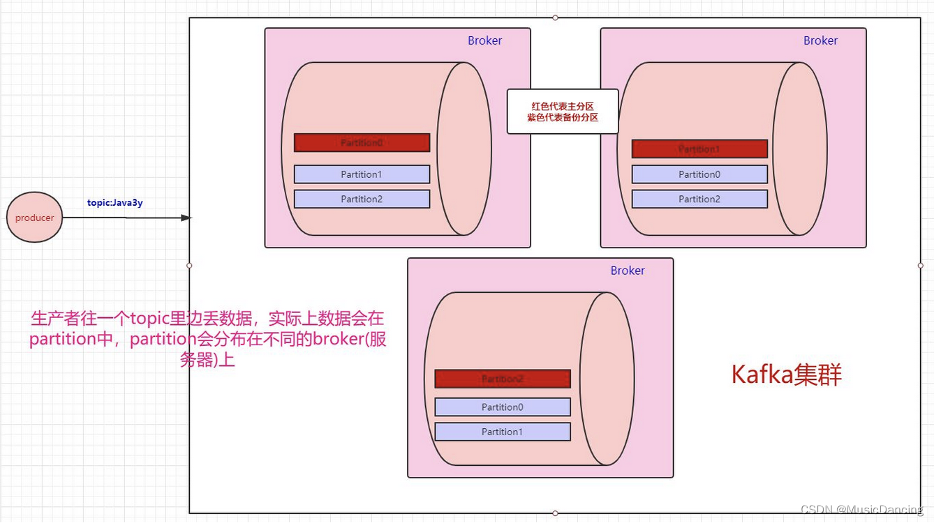 Kafka集群就是多台Kafka服务器(Broker),一个topic会分为多个partition,实际上partition会分布在不同的broker中,即Kafka是天然分布式的。