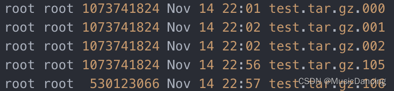 cat test.tar.gz.* >test.tar.gz (默认是按小文件后缀有序的)