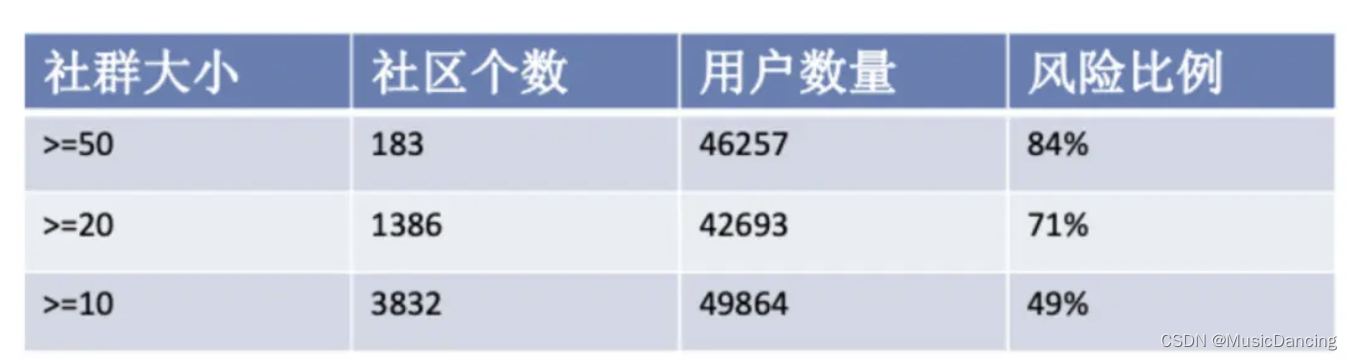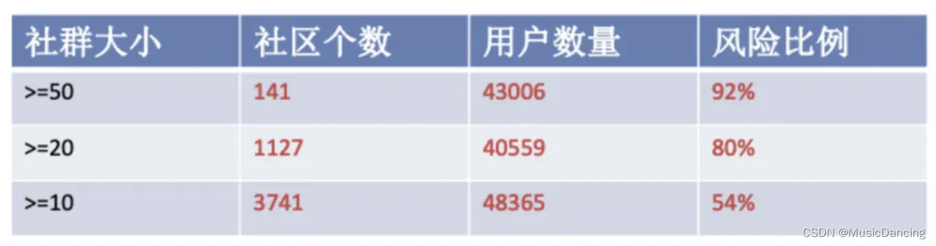 实际业务应用中,聚集群体通过自定义相关指标(社群大小、社群权重,群体资源比等)进行筛选,在黑产团伙识别中,平均识别准确率可达 70% 以上,黑产用户召回数量提升30%+,未暴露风险用户识别能力大幅度提升。