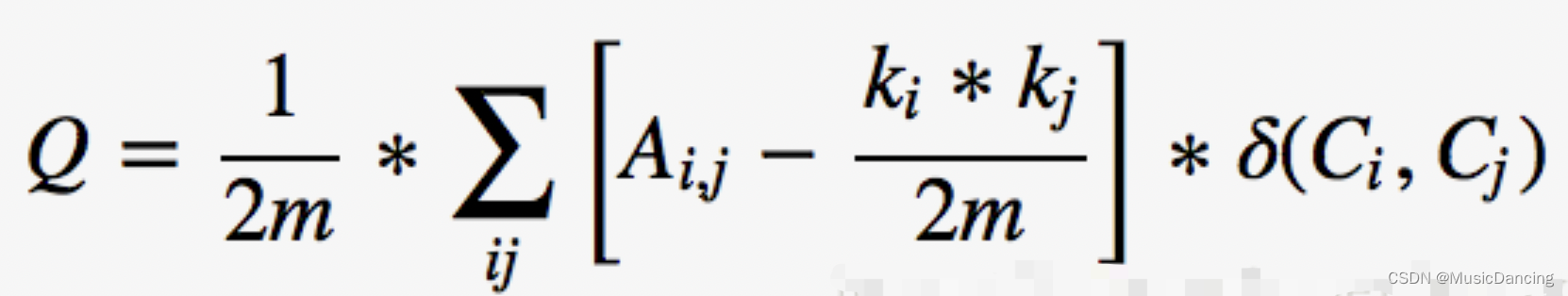 表示节点 i,j 之间的连边权重。模块度概念不是Louvain算法发明的,而Louvain算法只是一种优化关系图模块度目标的一种实现而已。