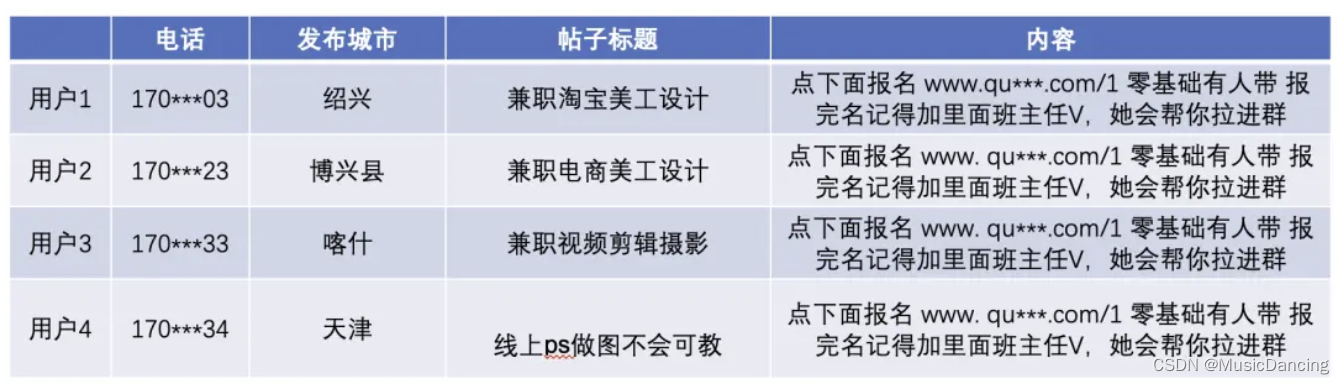 易知社群越大,该社群的用户风险比例越高。优化后的方式可以将大社区拆分,保留更多风险数据在群内,提高了群内用户的风险比例,从而对业务产生更大的价值。对某一团伙进行用户抽样,可以看出抽样用户均属于恶意引流违规,对社区内所有用户审核后发现 95% 以上为黑产用户,从中可以得到该群体用户大部分为黑产用户的结论。