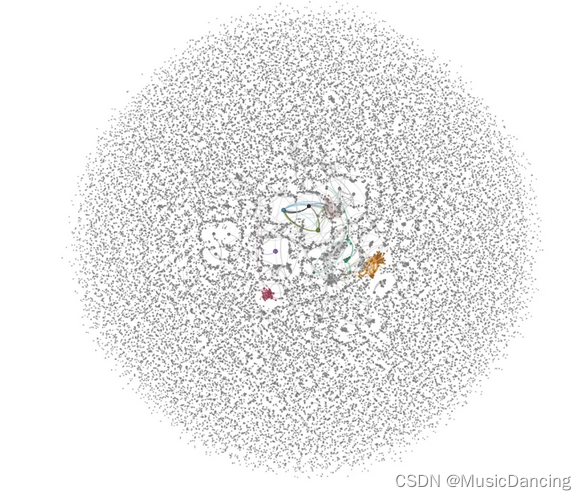 通过利用原始 louvain 算法对用户进行分群挖掘之后的可视化图像,从该图中可以看出大部分用户为正常无关联用户,中间深色部分为异常聚集用户。