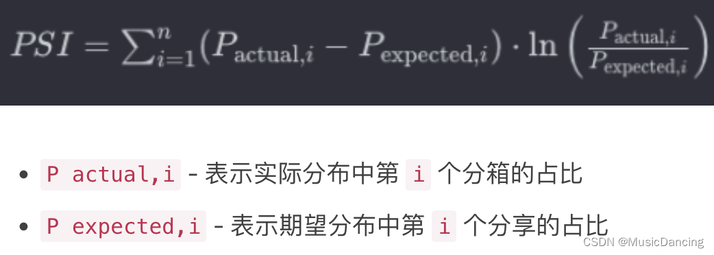 PSI = SUM(实际占比-预期占比) * ln(实际占比/预期占比)