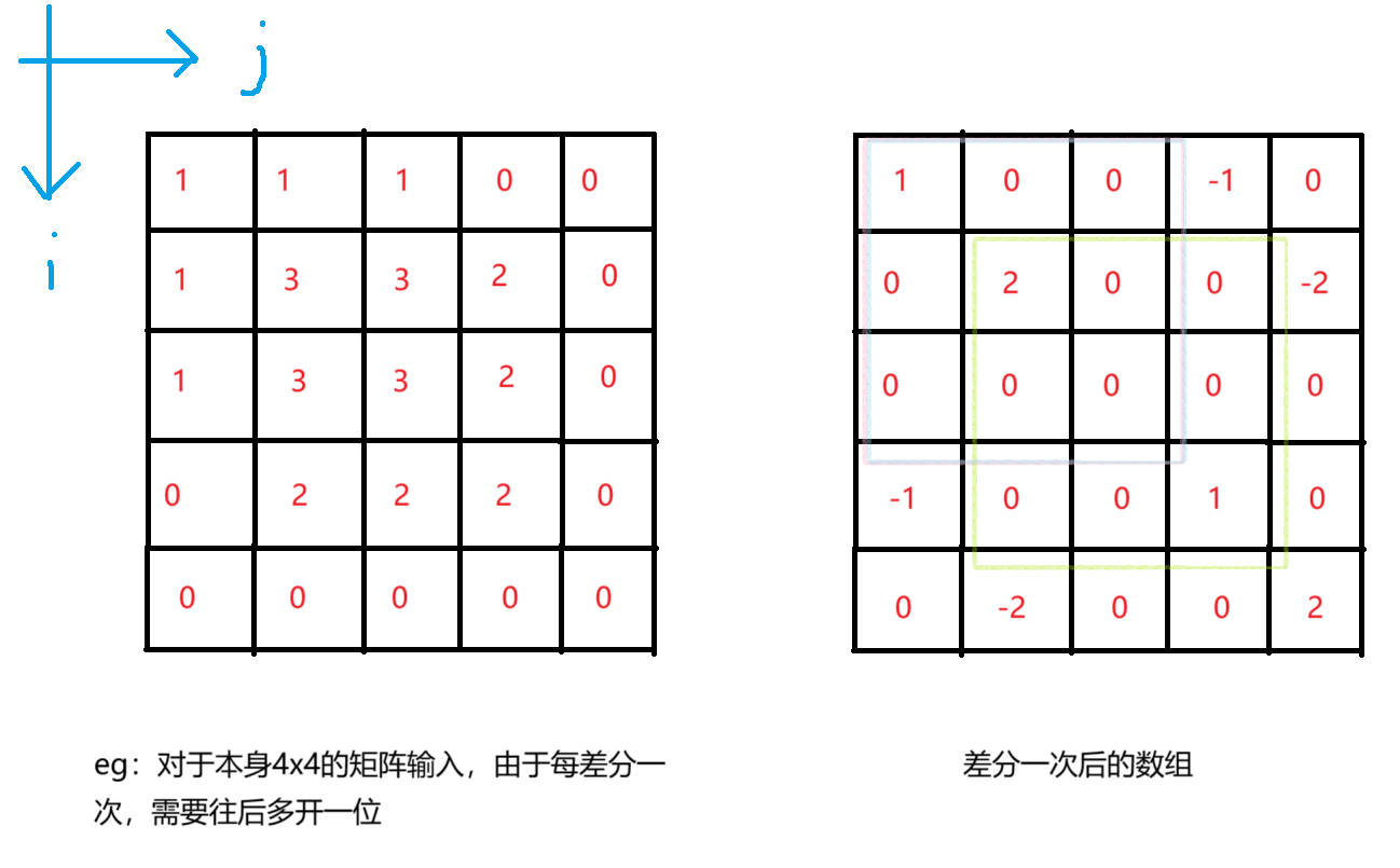 注意行与列差分的先后顺序,以免多减或者少减