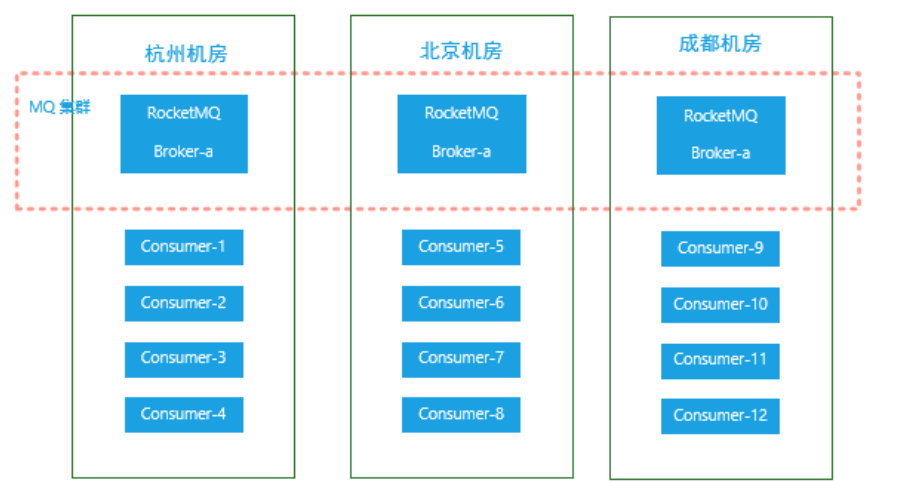 该算法会根据queue的部署机房位置和consumer的位置,过滤出当前consumer相同机房的queue。然后按照平均分配策略或环形平均策略对同机房queue进行分配。如果没有同机房queue,则按照平均分配策略或环形平均策略对所有queue进行分配。