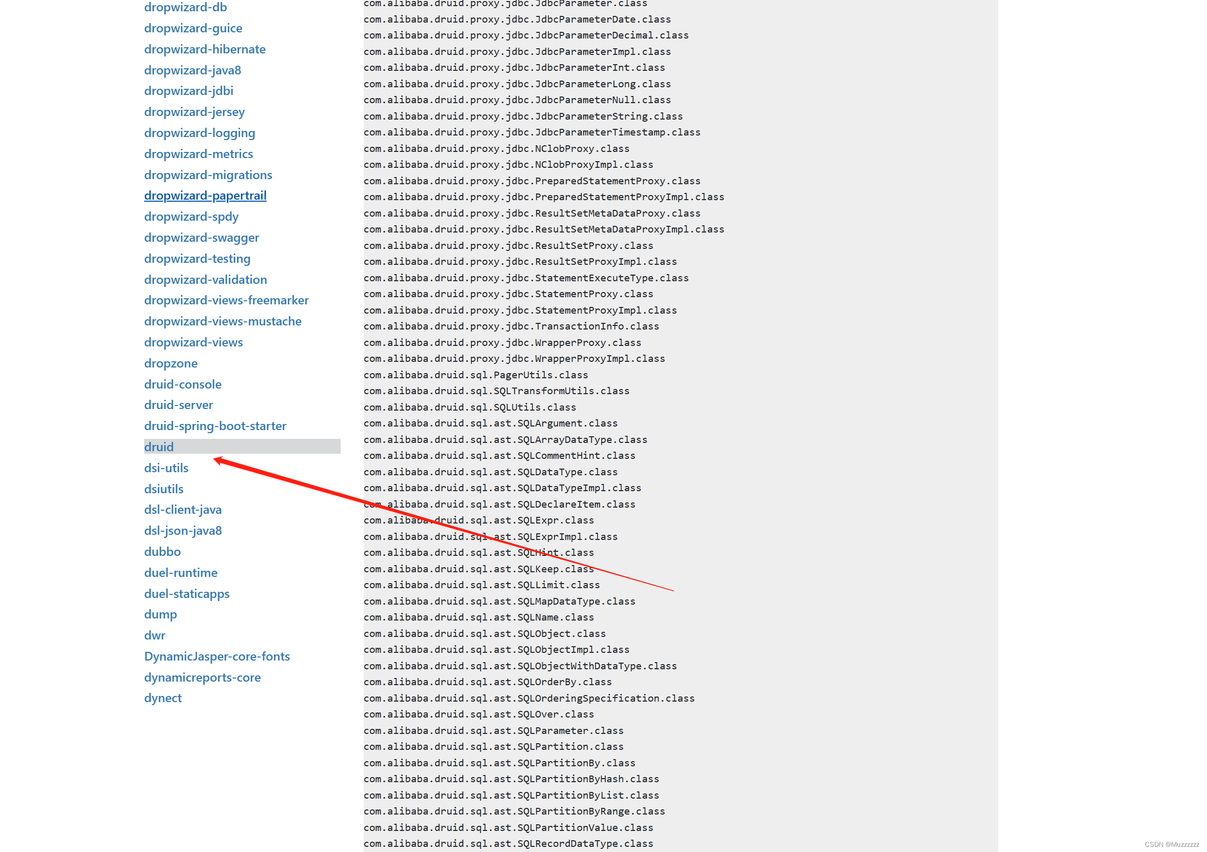 选择druid 往下拉 这文件巨多 得拉到最下面