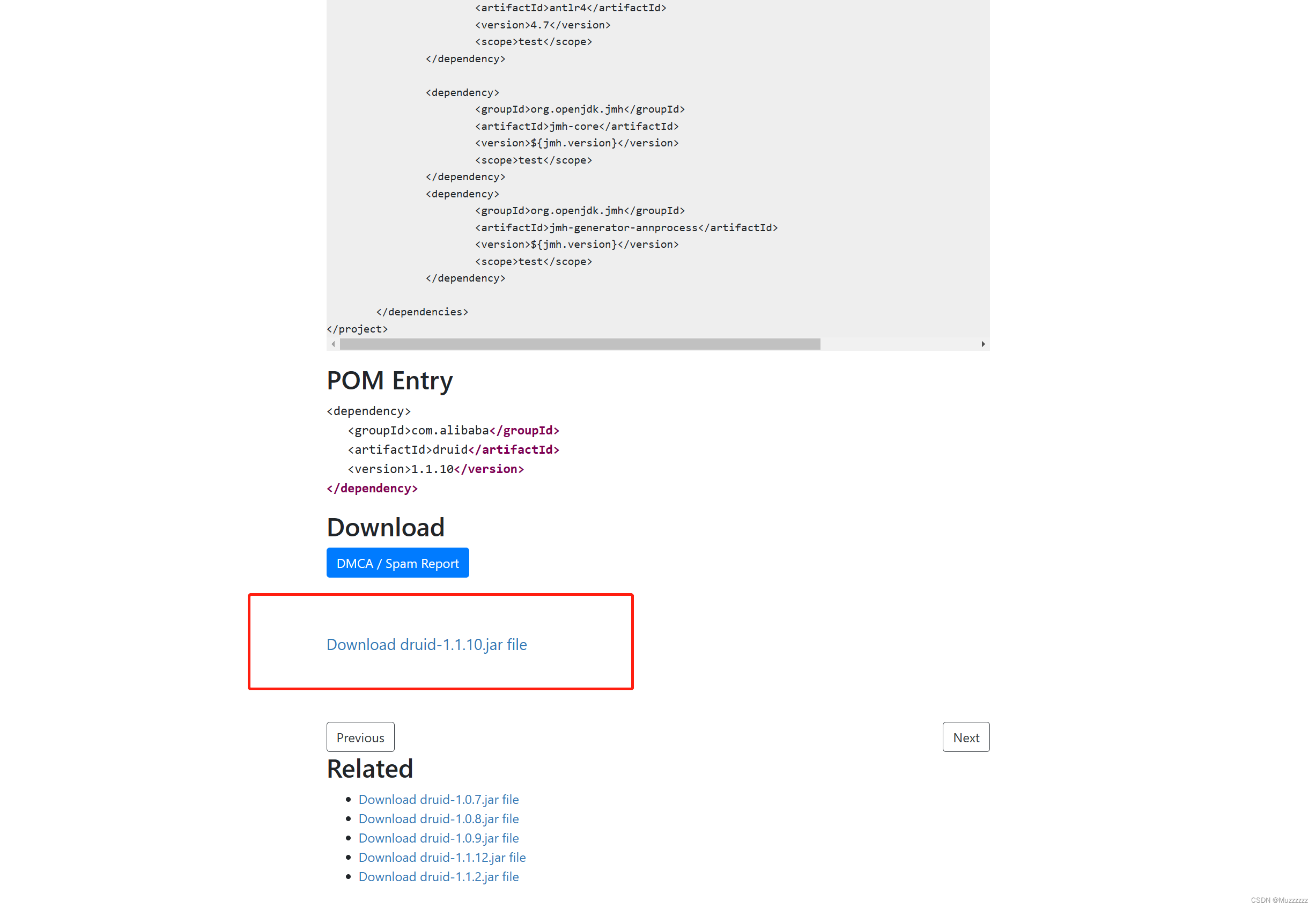 左下角找到Download druid-1.1.10 jar 文件下载即可