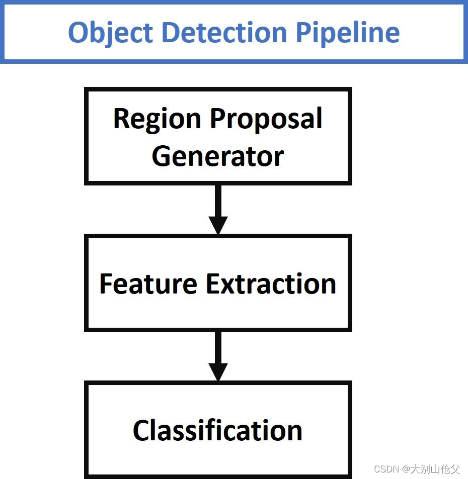 传统的目标检测技术遵循如下图所示的3个主要步骤。第一步涉及生成几个region proposals。这些region proposals是可能包含对象的候选方案。这些region proposal的数量通常在几千,例如2000或更多。一些生成region proposal的算法的例子是选择性搜索 (Selective Search) 和边缘框 (EdgeBoxes)。
