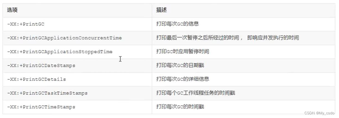 | 4 | -XX:MetaspaceSize | 元空间内存初始大小, 在JDK1.8版本之前配 置为 -XX:PermSize(永久代) |