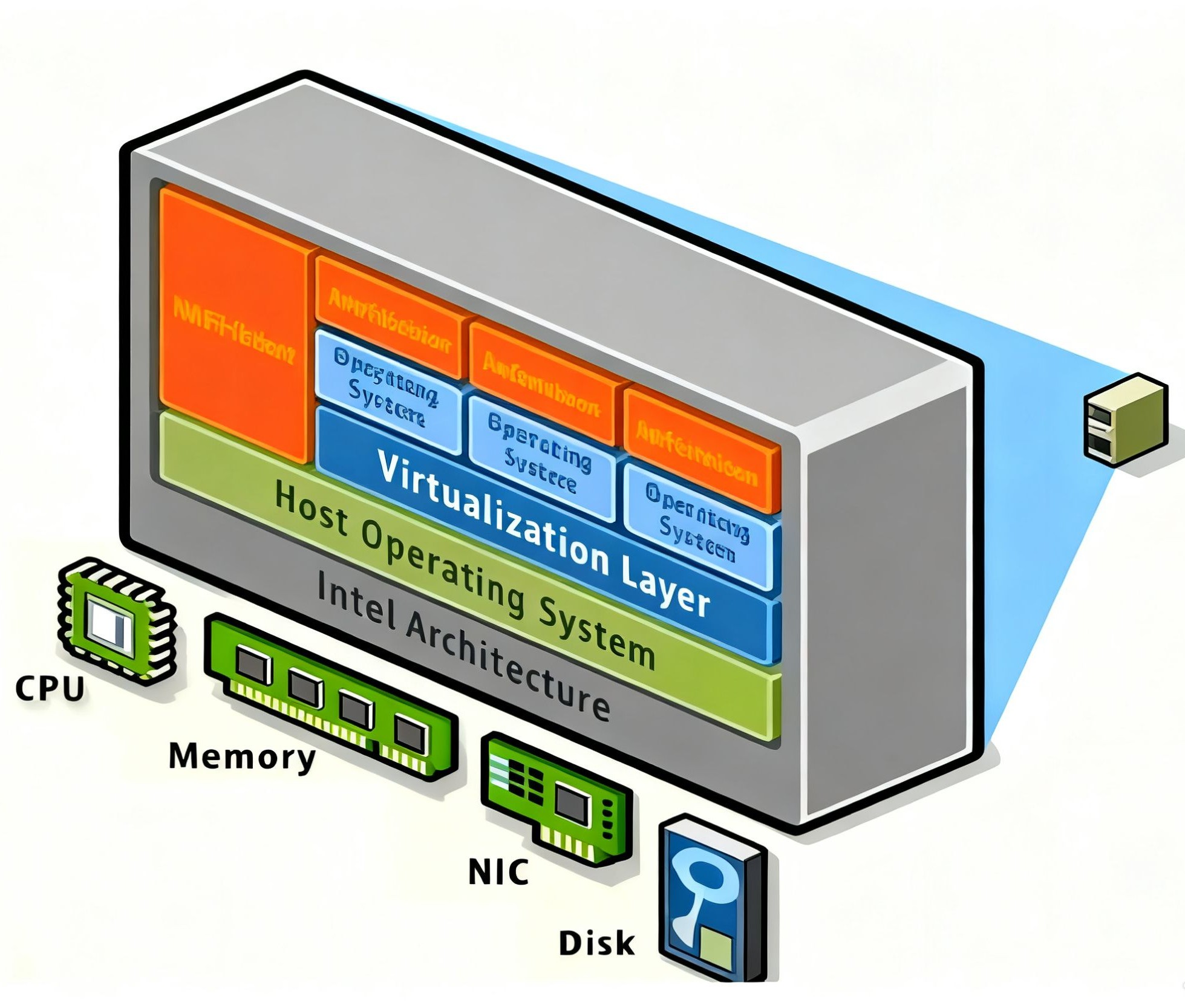 优点:提升物理资源利用率、实现虚拟机间隔离保障安全,且可灵活创建/迁移虚拟机