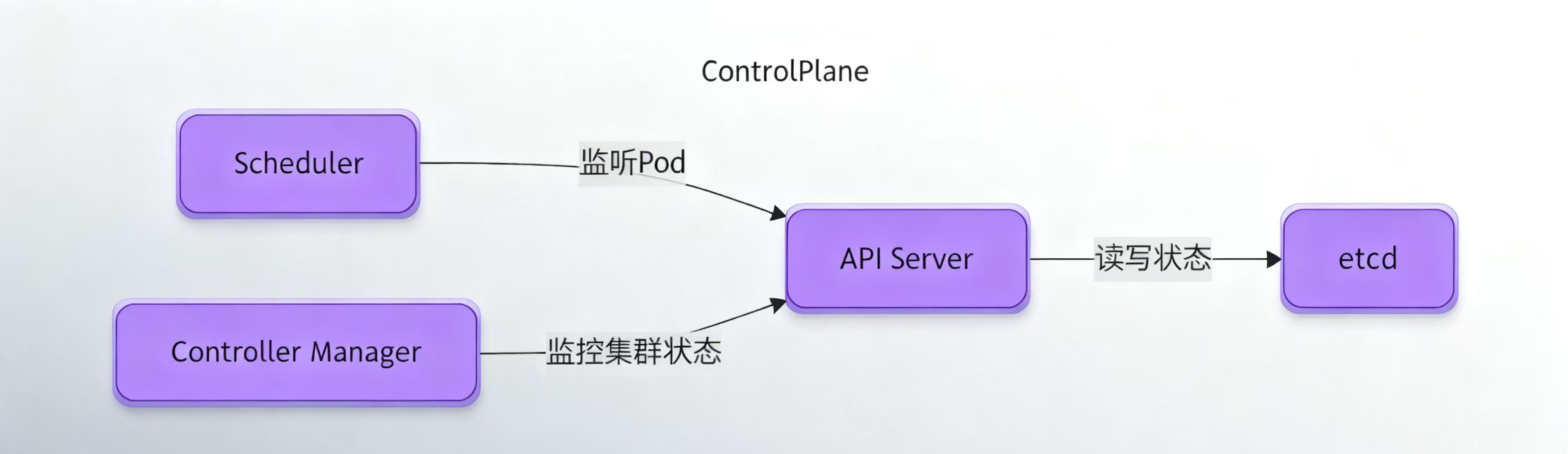 • API Server:集群操作的唯一入口,处理所有REST请求(如kubectl命令)