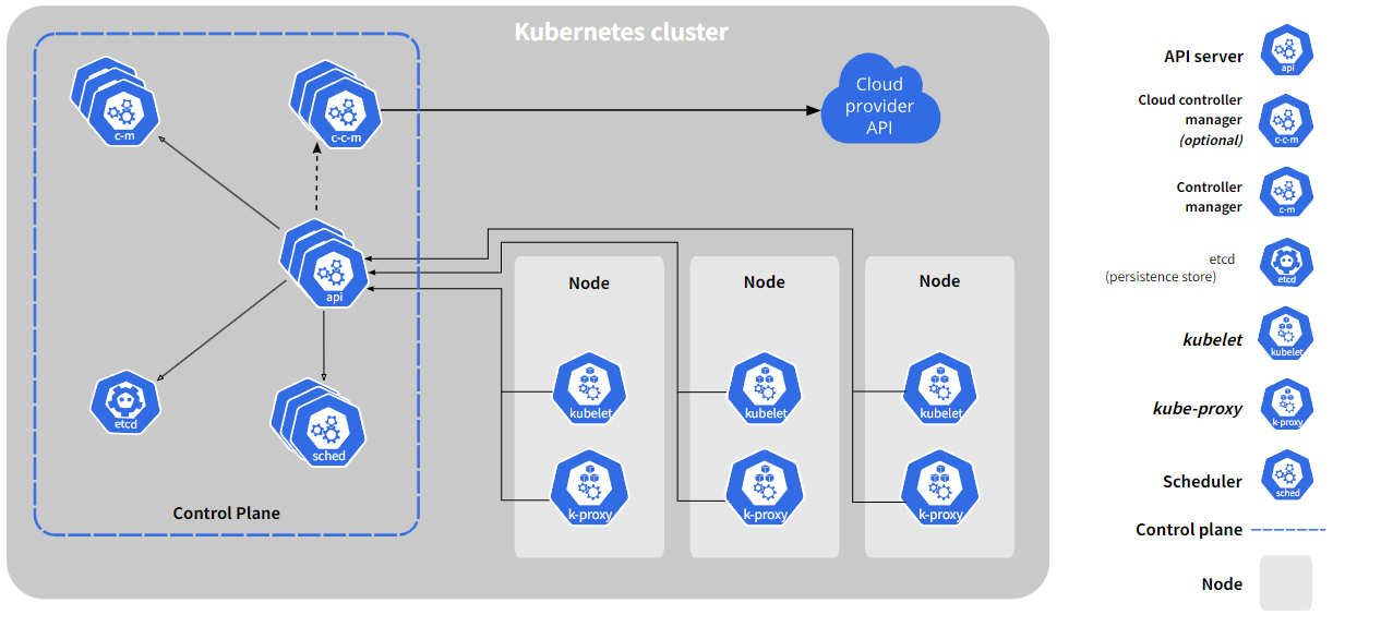 K8S的架构有三大核心部分组成,它们协同工作实现容器编排与管理: