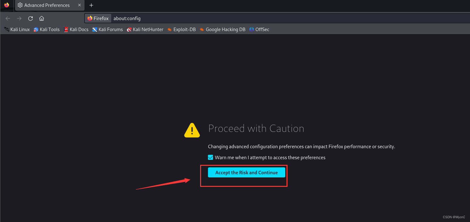 在搜索栏键入 about:config 后回车