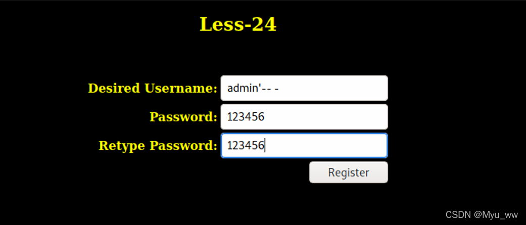 在网站注册名为 admin'-- - 密码为 123456 的用户