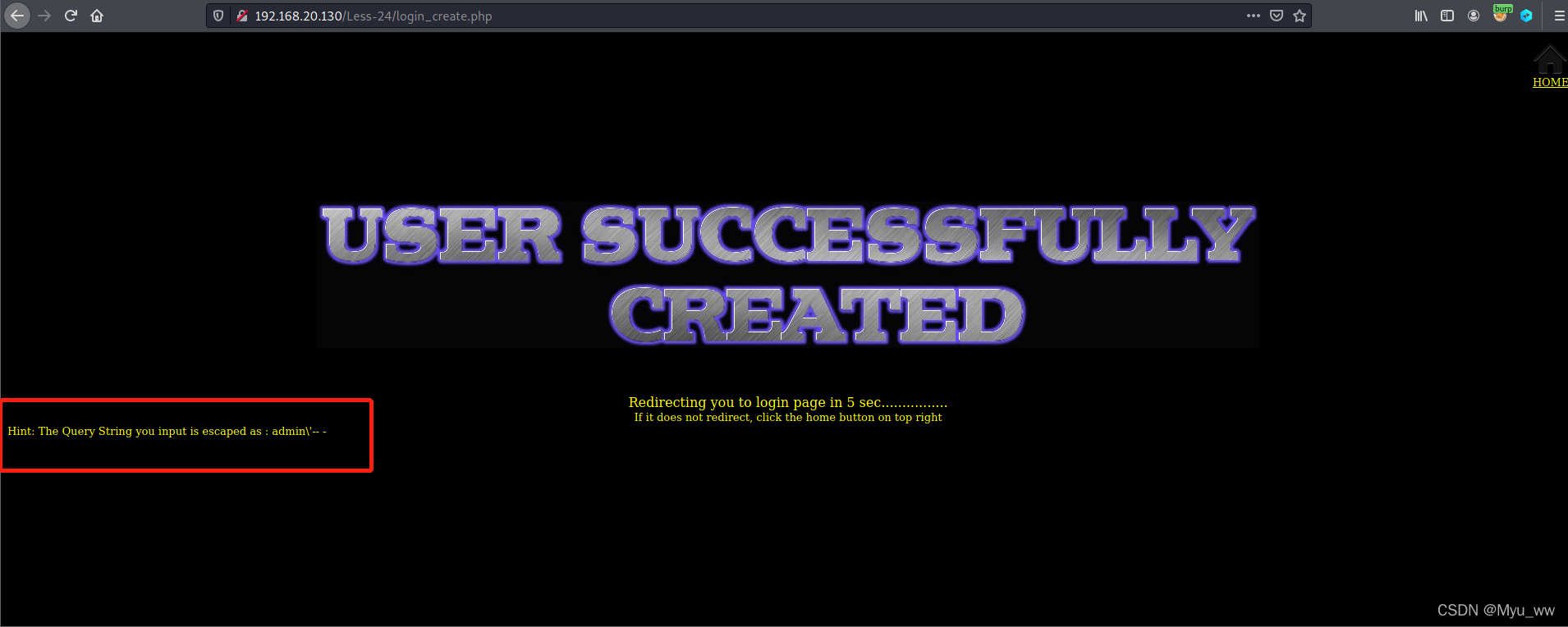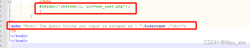echo "Hint: The Query String you input is escaped as : ".$username ."<br>";