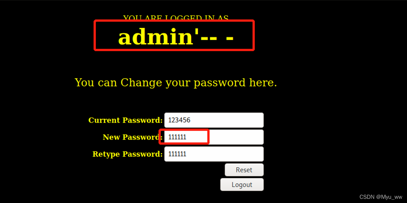 UPDATE users SET PASSWORD='$pass' where username='admin'-- -' and password='$curr_pass'