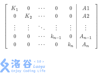 我们发现,我们改变的只有常数项,所以,我们只做一次高斯消元。通过这次高斯消元,我们显然可以求出未知数的系数,那对于_常数项_呢?