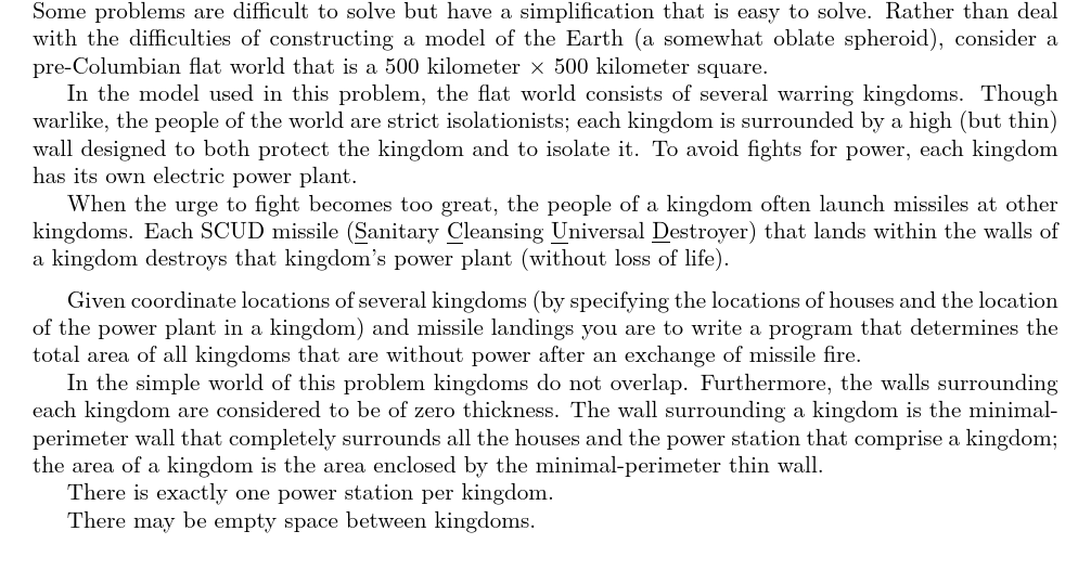 给你一堆城市,每个城市由一堆点构成,城市的围墙是包含这个城市所有点的最小多边形,城市之间两两不相交。然后有给出一堆导弹的坐标,若一个导弹打在某个城市内部即可摧毁这个城市,问导弹摧毁的城市的总面积。