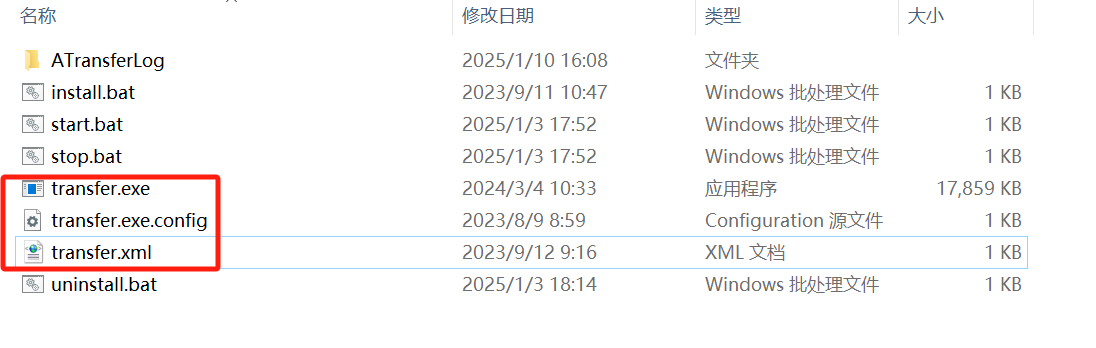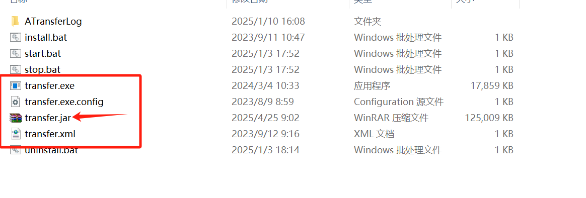 transfer.exe uninstall - 注:您的后台jar即在此处替换,jar文件名称须与上述截图文件保持一致