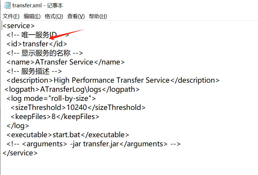 - 还是在jar文件夹创建start.bat文件,编写java -jar transfer.jar