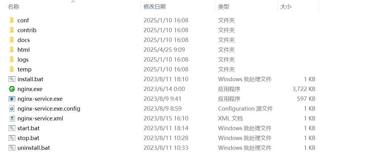 - 下载免安装Nginx,解压后放入nginx文件夹下,如下图