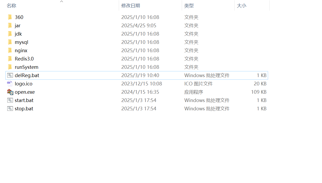 包括后端jar,JDK,MYSQL,NGINX,Redis,所有文件皆为Windows免安装版本,文章后面直接提供。如下图所示。