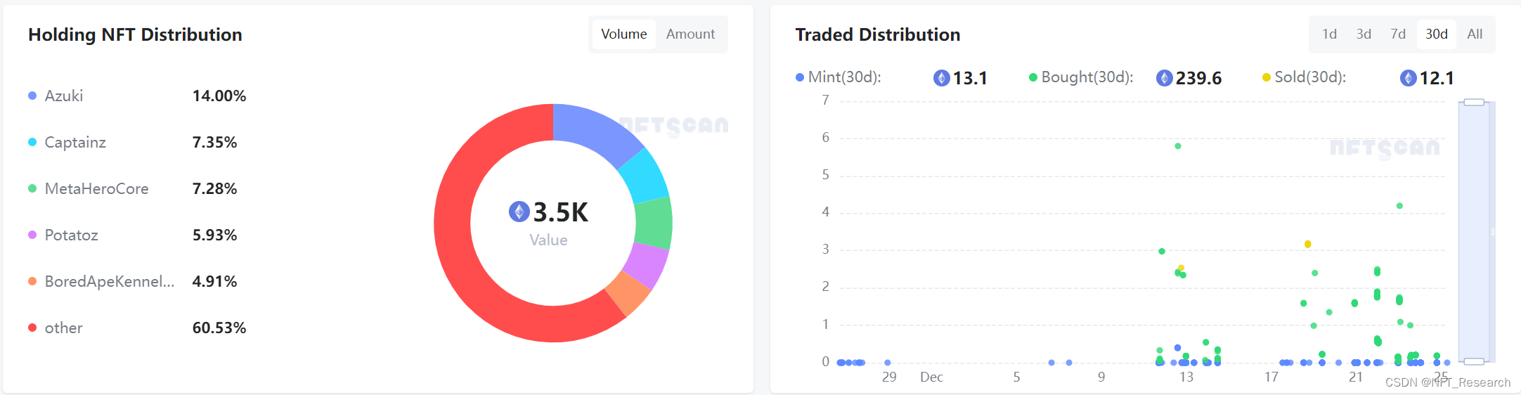 总而言之,NFTScan Portfolio 功能使用户可以全方位解读钱包背后的投资策略,洞察其资产配置与交易习惯,并运用数据分析持续优化自身策略,是 NFT 投资中重要的一项核心技能。