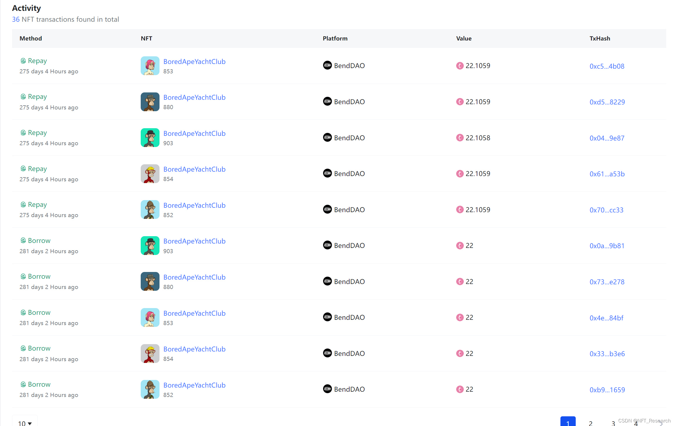 该钱包显示出良好的 NFT 资产运营能力,通过 Portfolio 共发现 36 笔 NFT 交易,能够融合 NFT-Fi 来提升资金使用效率。该地址曾在 BendDAO 平台上抵押数只 BAYC 作为借款抵押品,在保证组合稳定性的同时获取额外收益。其表现出审慎的风险态度,在合理期限内完成偿债,避免风险持续累积。总体来看,该钱包成功结合了 NFT-Fi 运用和谨慎的风控意识,既见挣到收益也把好了底线,这种精细化的资产管理策略值得业内投资者学习。