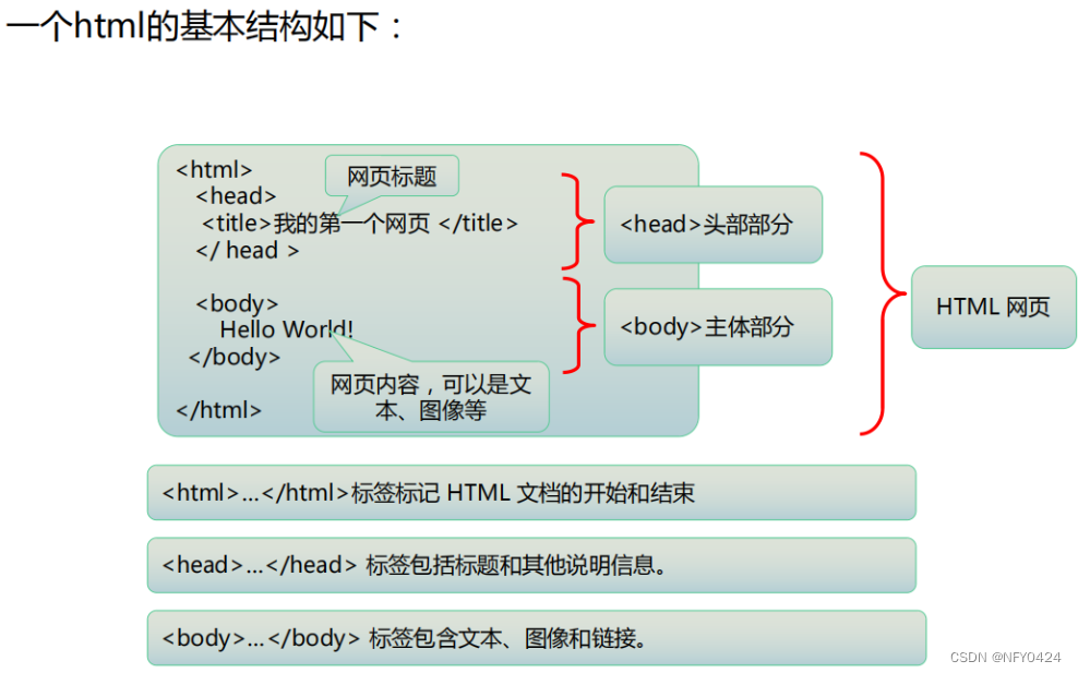 ●用HTML语言把我们需要显示的内容显示在浏览器上,但是HTML语言本身并不显示