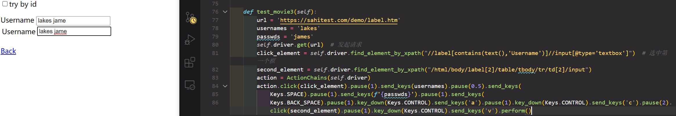 action.click(click_element).pause(1).send_keys(usernames).pause(0.5).send_keys(Keys.SPACE).pause(1).send_keys(f'{passwds}').pause(1).send_keys( Keys.BACK_SPACE).pause(1).key_down(Keys.CONTROL).send_keys('a').pause(1).key_down(Keys.CONTROL).send_keys('c').pause(2).click(second_element).pause(1).key_down(Keys.CONTROL).send_keys('v').perform()