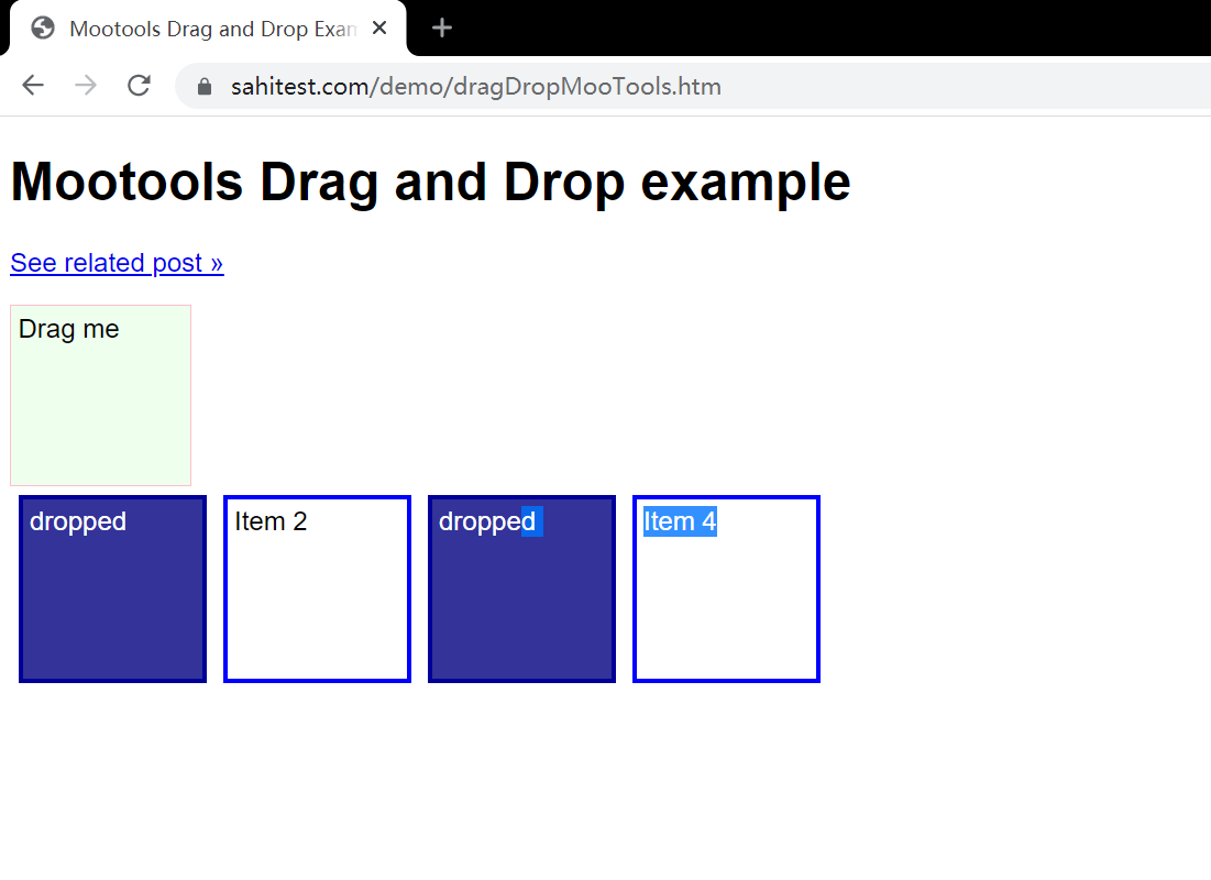 测试demo 2 网址为: Mootools Drag and Drop Example