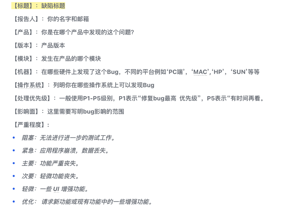 优秀的缺陷报告应该简洁明了并不遗漏任何关键点。任何不清晰的地方会导致开发产生误解并减慢开发流程。缺陷编写和报告是最重要的一点,但也是测试生命周期中容易被忽视的区域。