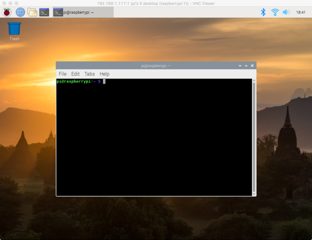 然后在实际使用的机器上下载VNC Viewer,输入树莓派的IP地址、VNC流的代号(就是:1)以及刚才配置的密码,就可以使用远程桌面了。
