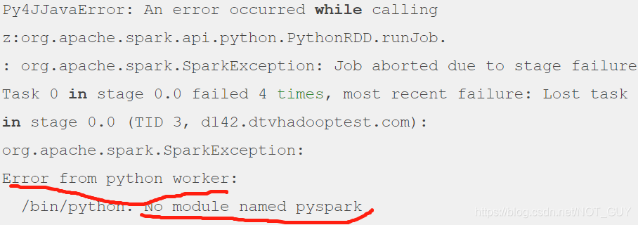 问题2:Error from python worker: /bin/python. No module named pyspark.