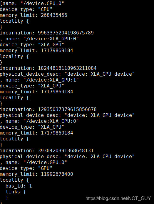 1)假如tensorflow-gpu版本低于tensorflow版本时,只会输出以下设备全是cpu的信息: