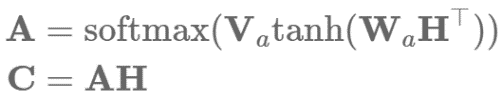我们可以计算出注意力向量a和最终的句子向量表示c如下: