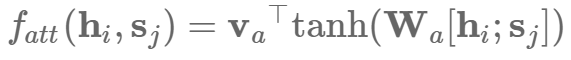 其中Va和Wa是学习到的注意力参数。相应地,我们也可以使用矩阵W1和W2分别对hi和sj作相应的变换,然后求和: