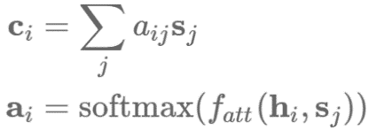 来得到一个上下文向量ci,再结合当前层的隐状态hi来做出预测。上下文向量ci是之前隐藏层状态的加权平均,权重系数为ai:,如下面的公式: