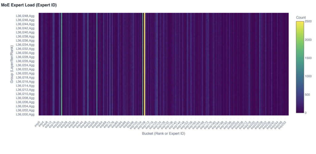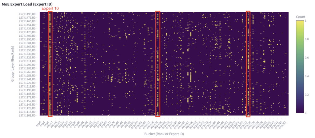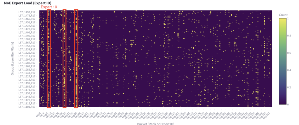 如果使用另一个请求,我们仍然可以观察到专家失衡问题。虽然热门专家可能不同,但有一些是共同的(在此示例中是专家 10)。