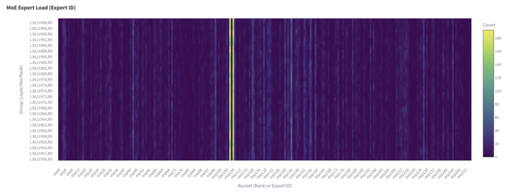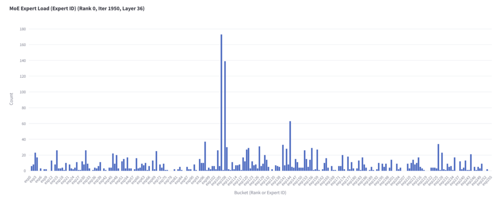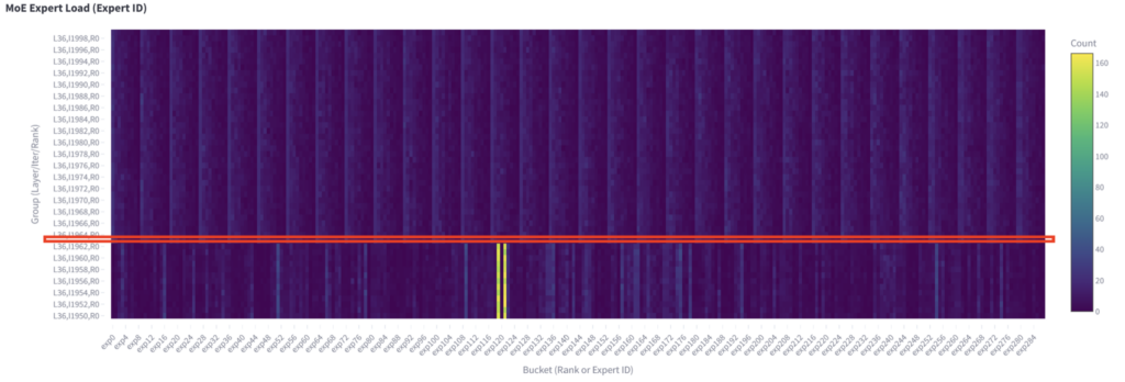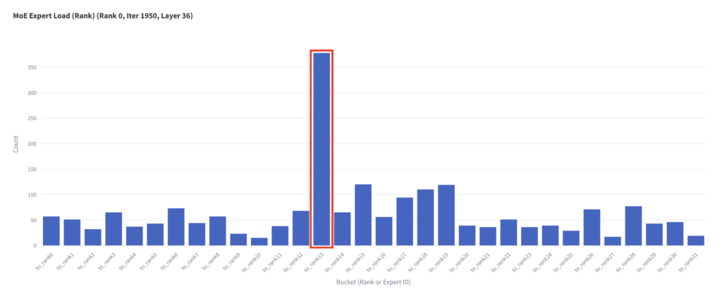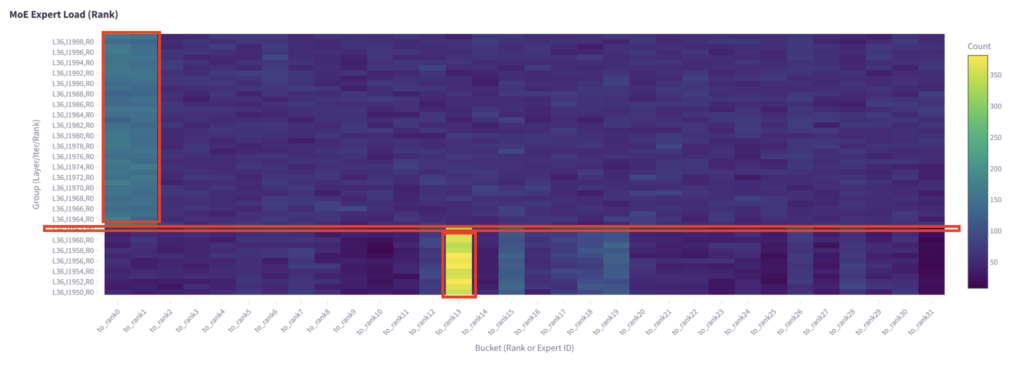 如果我们放大第 36 层的 MoE 并记录其激活专家 rank 的分布,可以清楚地看到有一个 rank 被更频繁地激活: