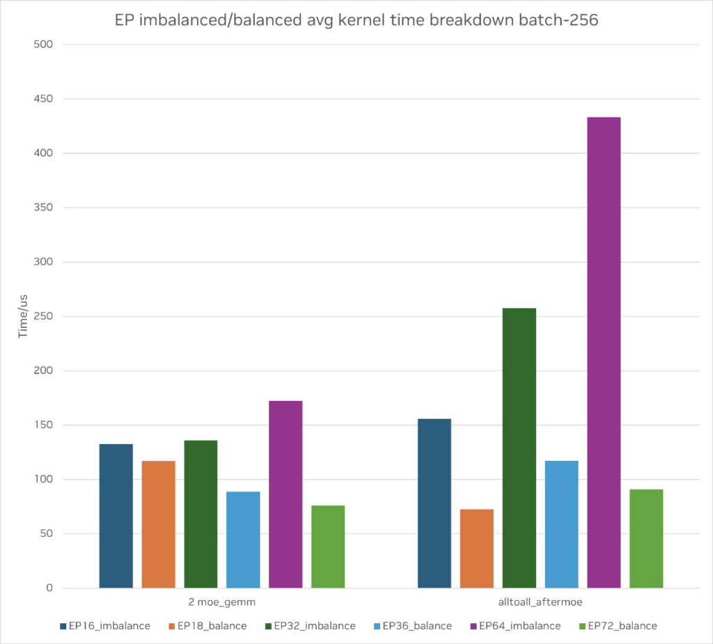系统设计中不存在“免费的午餐”。当 EP 规模增大到超过 8(有时甚至不到 8)时,由于 MoE 模型的稀疏执行特性,会自动触发 EP 级别的负载失衡问题。