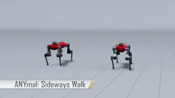 图 6. 解析仿真器与 NeRD 模型在 ANYmal 机器人 1m/s 侧向行走 RL 策略中的对比