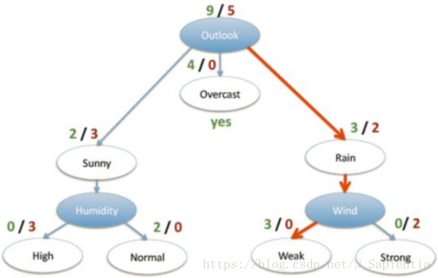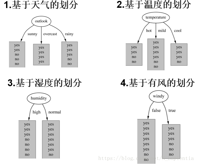 3、遍历所有的样本每种随机变量的信息增益,排序,根据最大开始进行分裂。