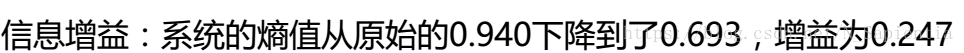 2、再计算信息增益,也就是样本随机变量的熵值与对应样本随机变量的概率相乘再加和。