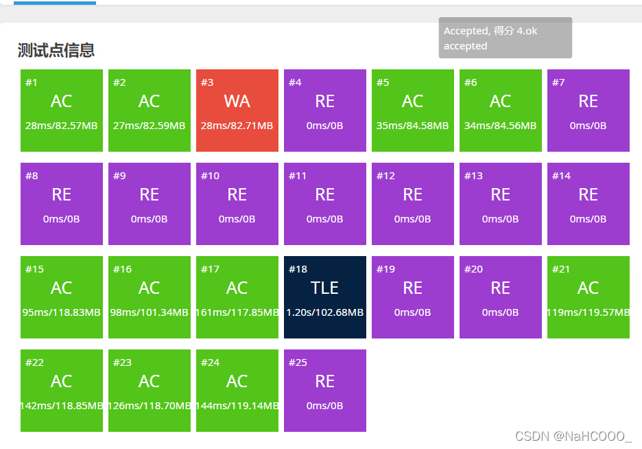对于这第三个版本我开始看感觉好像比第二个还容易,甚至就直接每个输出就完事了,然后看了下数据,明显数据量加大了不少。于是用原本的代码提交了一发。结果肯定是过不了的(交的时候其实也就猜到了,不然怎么可能叫二次加强呢)